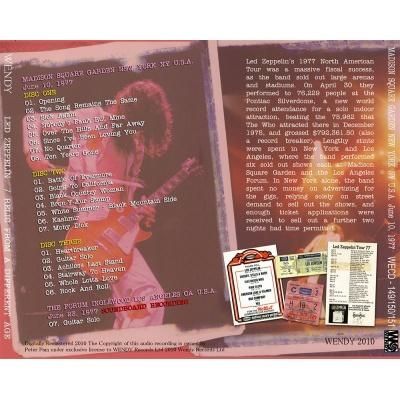 ボーナストラックとして、1トラックだけですが、1977年6月23日ロサンゼルス公演をサウンドボードで収録しています。これはWENDYレーベルの『YOUR KINGDOM SEATTLE』のメニュー画面にて収録されていたもので、有名なバッヂホルダーの日のサウンドボード音源として、CDとしては初収録になります。