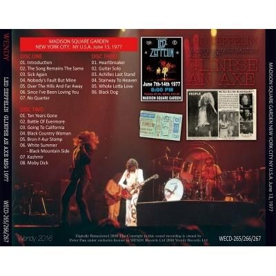 ツェッペリンのライヴにおいて、極々狭い世界での範囲ではあるが、過小評価されているものがある。名演や名音源は数多くあれど、様々な理由からタイトルが少なかったり、あまり世に知られていない隠れた名音源というのも、まだまだ数多く存在する。Wendyレーベルはそのようなライヴにもスポットを照射して世に出したいと考えているのだろう、本作も、そのような過小評価されているライヴのひとつである。1977年の北米ツアーといえば、何といってもエディから始まるロサンゼルス連続公演が有名であろう。もちろんロサンゼルスにおける各公演はいずれも名演である。しかし、ロサンゼルス以外でも1977年はランドーヴァーとニューヨークで大規模な連続公演が行なわれている。本作は、そのニューヨークはマジソン・スクエア・ガーデンにおける連続公演より、6月13日の公演を収録している。