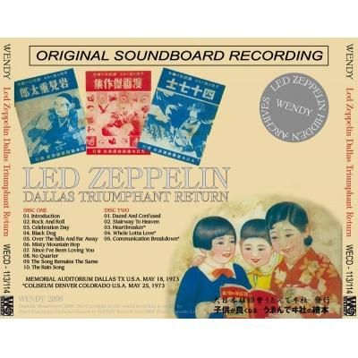 1973年のサウンドボード音源、5月18日ダラス公演がリリースになります! 迫力のダラス公演を迫力のサウンドボード音源にて堪能できるすごいタイトル。この日はジョンポールジョーンズの体調がいまひとつだったらしく、ロバートがMCで、その不調の理由として前のヒューストンで張り切り過ぎたことと、次のフォートワースで頑張るからと陳謝しています。だったらこの日のコンサートはどうなんだよと思うのですが、そこは空気を読んで突っ込まないであげてください。それでも中盤以降は調子をどんどん上げていき、まさにツェッペリンのダラス凱旋といった赴きのコンサートとなっています。 今回もファースト・ジェネレーション・マスターを使用ということで、音質はもちろん、内容的にも今までで最高のものとなっています。残念ながら既発タイトル同様「STAIRWAY TO HEAVEN」までの収録となっていますが、その音質はサウンドボード音源というだけでなく、こもり気味だった既発タイトルを凌駕するもので、今まで関連タイトルを所有している方でも買い替える価値アリの一枚。  なお、後半3曲は、同年7月25日デンヴァー公演の、同じくサウンドボード音源を収録。このデンヴァー公演は、この3曲しかサウンドボード音源が発掘されておらず、ここにその全てを収録することにより、本来演奏されたであろう「MOBY DICK」を除き、全体を通してコンサートの流れを再現しています。 音質は最高のサウンドボード。内容はファースト・ジェネレーション・マスターによる最長収録。美しいピクチャー・ディスクの、がっちりプレス盤で日本語帯付。