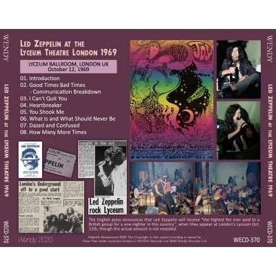 1969年10月2日伝統あるロンドンのライセウム劇場ボールルームでのコンサートを、1stGen > DAT、つまり1stジェネレーション・テープからDATを経由したソースより収録している。秋のUKツアー最終日であり、「Good Times Bad Times」のイントロから「Communication Breakdown」で始まるセットリストは、この日が最後となる。美しいピクチャーディスク仕様の永久保存がっちりプレス盤。日本語帯付。