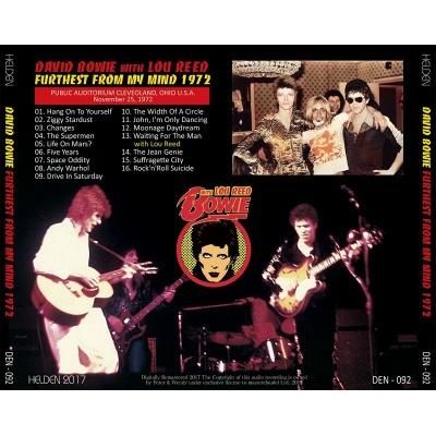 本作は1972年11月25日オハイオ州はクリーヴランド公演を収録している。日程的にはおおよそツアー折り返し地点に位置する公演である。セットリストは「君の意思のままに」から始まり「ロックンロールの自殺者」で終わる定型であるものの、珍しいところでは「The Superman」や「Andy Warhol」、そして「John I’m Only Dancing」などが挙げられる。そして先述の「Waiting For The Man」も、この日セットリストに加えられている。この日が特別な日であるのは、この「Waiting For The Man」にルー・リード本人が飛び入りしてボウイと一緒に演奏に加わっている点である。裏ジャケットに当日の写真が使われているが、ボウイの横でルー・リードがギターを弾いて共演しているステージなのである。あらゆる世代を超えて影響を与えた二人の貴重な共演ステージはマニアならずとも必聴であろう。