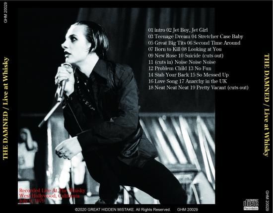 ダムド超秘蔵音源、ウイスキーアゴーゴーライヴ登場。当時のAUD音源にしては良好です。音圧調整、ノイズ低減の調整を丁寧に行っております。
