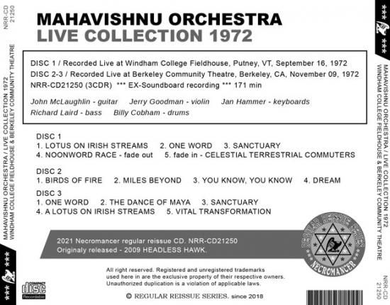 * MAHAVISHNU ORCHESTRA / LIVE COLLECTION 1972 / WINDHAM COLLEGE FIELDHOUSE & BERKELEY COMMUNITY THEATRE (3CDR)