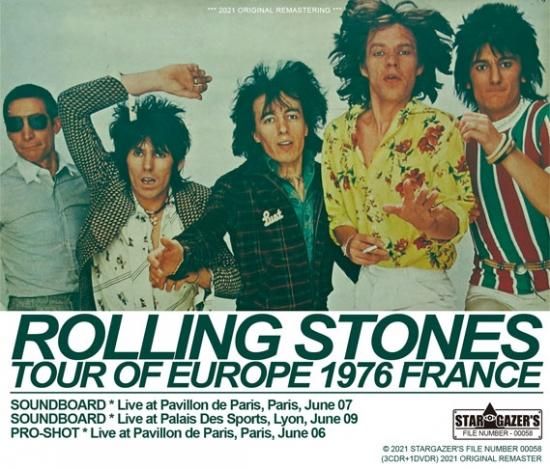 ローリング・ストーンズの定番サウンドボード音源と、同じく定番のプロショット映像をカップリングしたコレクション・アイテムです。1976年ヨーロッパ・ツアーより、いずれもフランスで行われたライヴで、6月7日パリと6月9日リヨンでの公演はサウンドボード音源をリマスタリングし3CDRに、6月6日のパリ公演は現存する中では最も優れたプロショット映像を1DVDRにそれぞれ収録しています。オフィシャル・クオリティとはいきませんがサウンドボード音源とプロショット映像のカップリングでストーンズ・ブートの入門用として、また手ごろに70年代ストーンズの魅力を再確認できるコレクションとして好タイトルです。DVDRにメニュー画面はありませんが、裏ジャケットのセットリスト通りにチャプターは打ってあります。