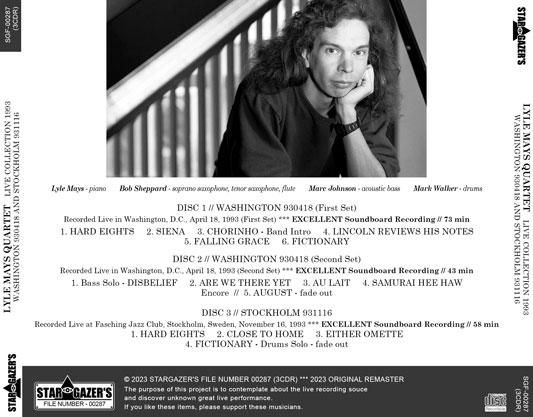 * SGF-00287 // LYLE MAYS QUARTET / LIVE COLLECTION 1993 / WASHINGTON 930418 AND STOCKHOLM 931116 (3CDR)